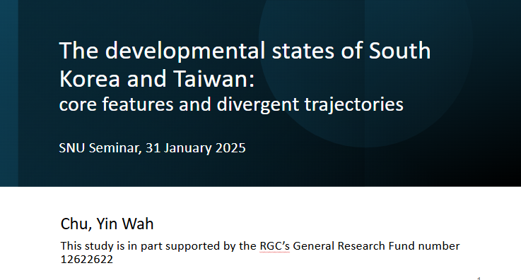 주제: “The Developmental States of South Korea and Taiwan: Core features and divergent trajectories”