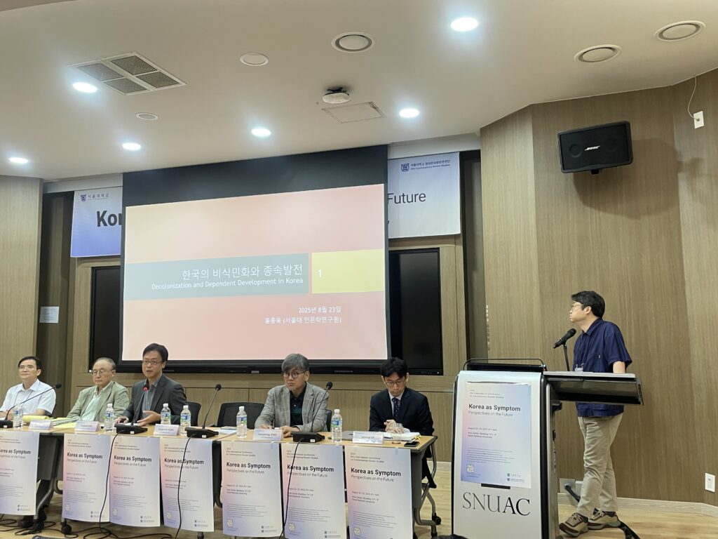 서울대학교 현대한국종합연구단은 “Korea as Symptom”을 주제로 8월 22일과 23일 양일간 국제학술대회를 개최하였다. 국제학술대회 둘째 날 첫 세션으로 국가성과 시민사회 팀은 서울대학교 아시아연구소 영원홀에서 “Perspectives on the Statehood of Modern and Contemporary Korea” 세션을 진행하였다. 본 세션은 서울대학교 김종학 교수의 사회 아래 네 개의 발표가 이어졌다.