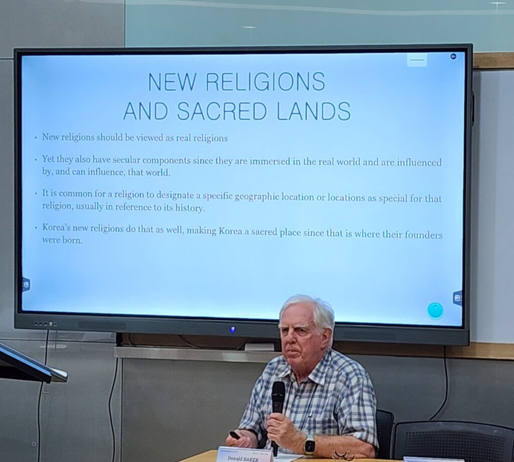 첫 번째 발표자는 브리티시 콜롬비아 대학교(University of British Columbia)의 도널드 베이커(Donald Baker) 교수로, “Sacralizing the Nation: New Religions and Korea’s Place in the World”를 주제로 발표하였다. 그는 지금껏 주목을 받지 못했던 한국의 신종교에 초점을 두고, 신종교 속 한국의 종교적 민족주의를 분석하였다. 특히, 동학/천도교, 원불교, 대종교 등을 사례로 들어 한국의 신종교가 근대 한국사와 교차하는 지점을 밝혔다.